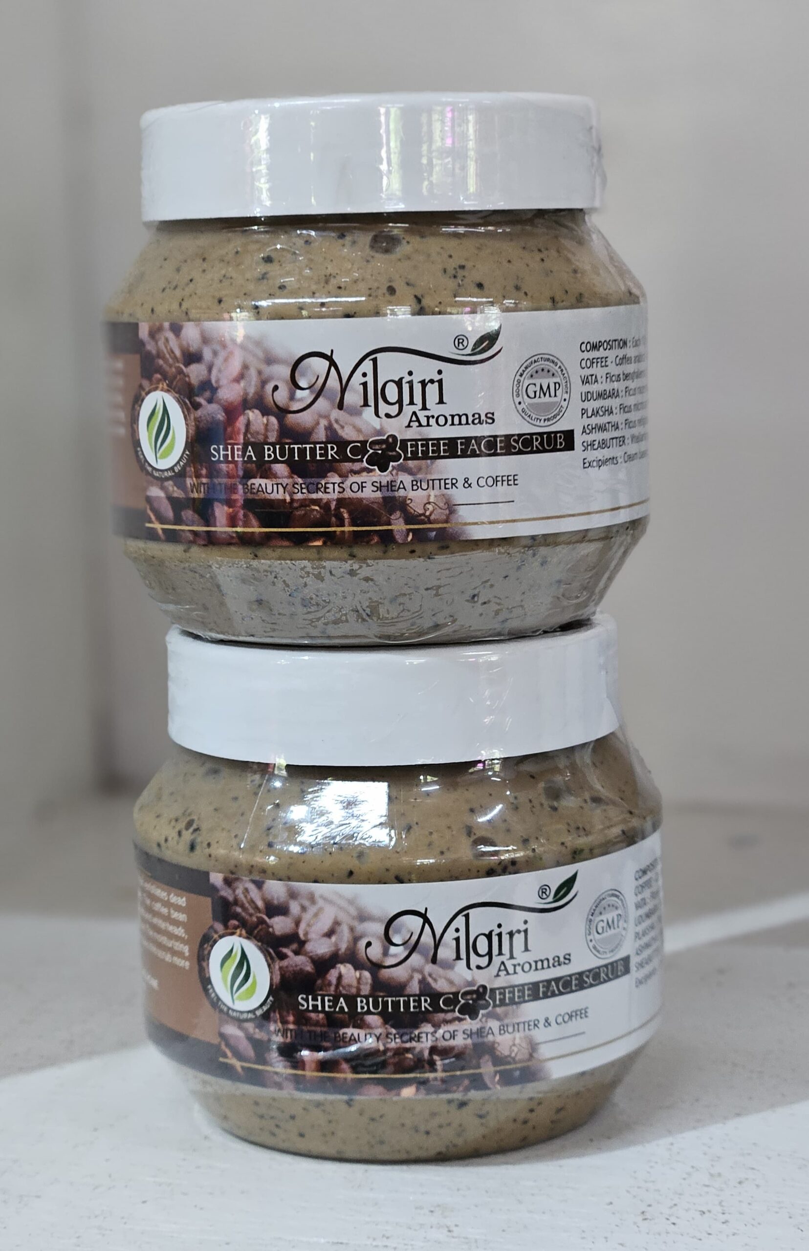 Nilgiri Aroma’s Shea butter Coffee face Scrub exfoliates dead Skin Cells and removes the skin impurities. The coffee bean particles in this scrub removes both black heads and white heads. revitalizes your skin and leaves it soft and clear. The moisturizing and rejuvenating properties of sheabutter makes this scrub more skinfriendly. Gentle for all skin types